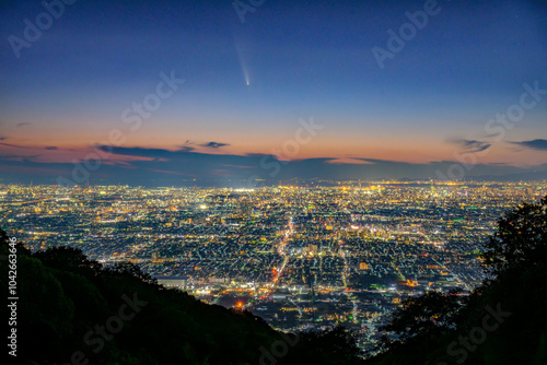 Obraz premium 紫金山アトラス彗星と大阪の夜景 広角