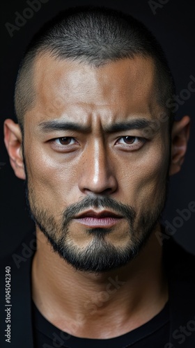 Obraz premium 短い髪とひげを持つ決意に満ちた男性の強い表情