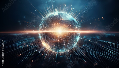 Obraz premium 거대한 구체에서 빛의 조각들이 퍼져나간다