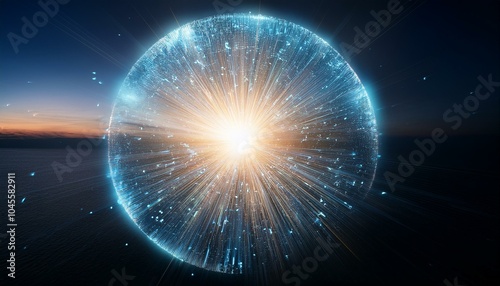 Obraz premium 거대한 구체에서 빛의 조각들이 퍼져나간다