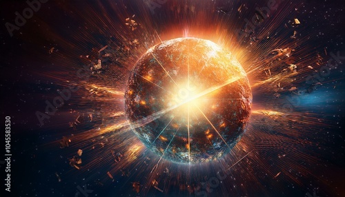 Obraz premium 거대한 구체에서 빛의 조각들이 퍼져나간다