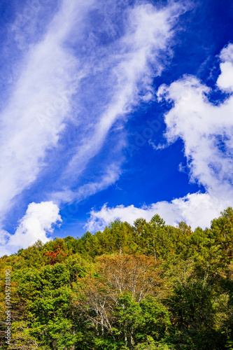 © kikisora, Obraz premium 秋晴れの空と紅葉 松本市