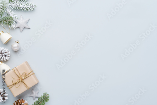 Fototapeta premium シンプルでエレガントなクリスマスのギフトとオーナメントの背景