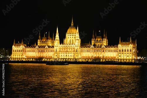Obraz premium ブダペストの国会議事堂のライトアップ