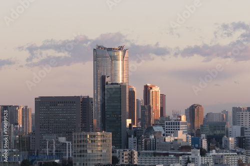 Obraz premium 東京都市風景 マジックアワー 夕焼け 青山 六本木 夕景 夕日 コピースペース