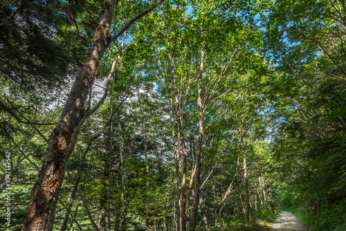 Naklejka premium 緑に包まれた林道-長野県下高井郡山ノ内町