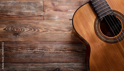 Fototapeta premium 木のテクスチャとクラシックギターが織りなす心地よいデザインの世界