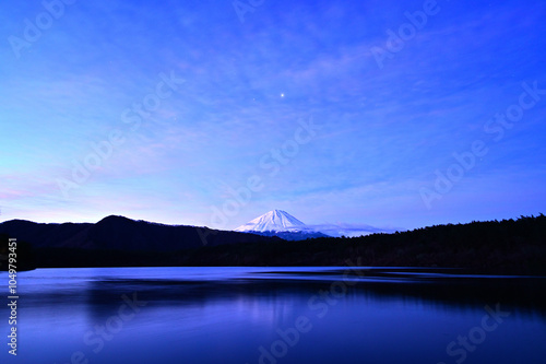 © ★KAI, Fototapeta premium 【山梨県】夜明け前の美しい西湖と富士山