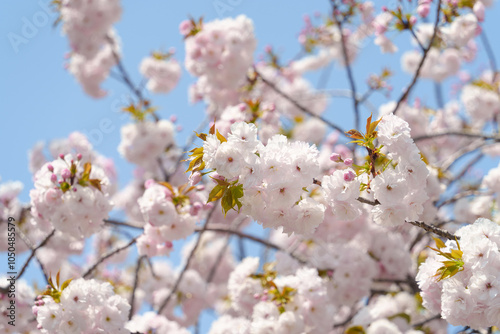 © nukopic, Obraz premium 満開のピンクの八重桜と青空