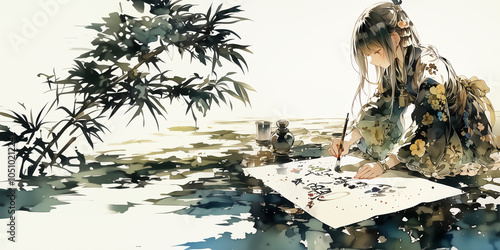 © SHI YOU, Fototapeta premium 書道を嗜む女の子