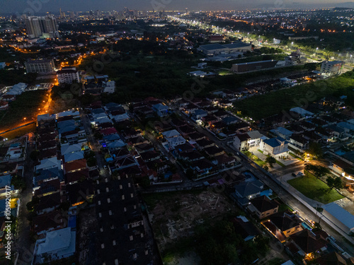 © rokacaptain, Fototapeta premium 한적한 새벽시간의 밝게 빛나는 수쿰빗 도로의 풍경.