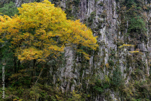 Fototapeta premium 紅葉に映える高千穂峡の岩肌