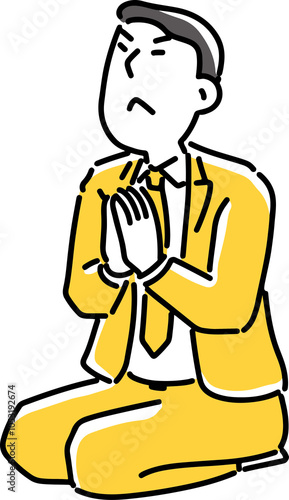 © poosan, Fototapeta premium 手を合わせてお願いする男性