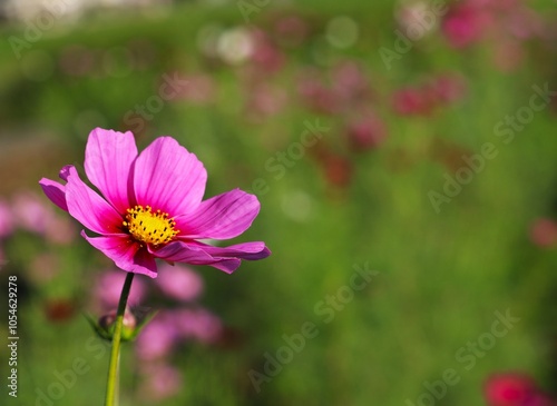 Obraz premium 風に揺れるコスモスの花 秋のコスモス畑