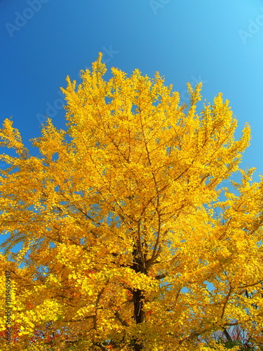 © smtd3, Fototapeta premium 秋の黄葉のイチョウと青空