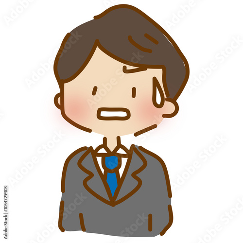 © てがきっず, Obraz premium 怪訝そうな顔をしたゆるくて可愛いスーツの男性