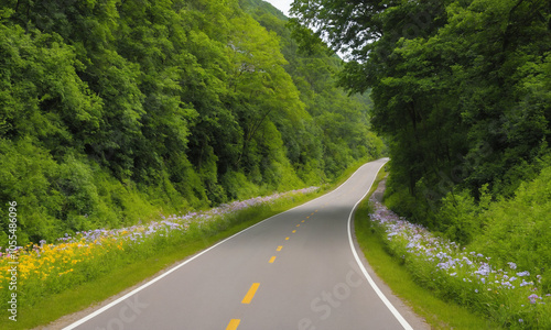Fototapeta premium 시골길 도로 옆 나무와 꽃 예쁜 시골길