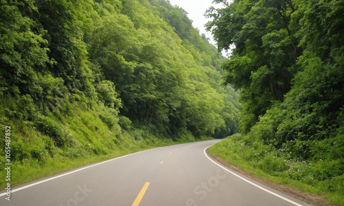 Fototapeta premium 시골길 도로 옆 나무와 꽃 예쁜 시골길