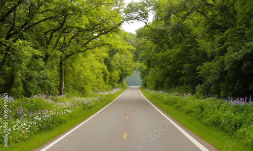 Fototapeta premium 시골길 도로옆에 꽃과 나무가 예쁘다 쾌적한도로