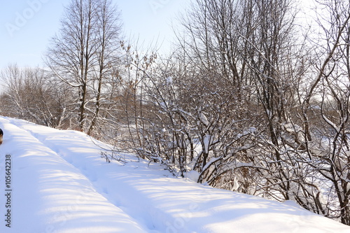Obraz premium Тропинка в снегу зимним солнечным днем