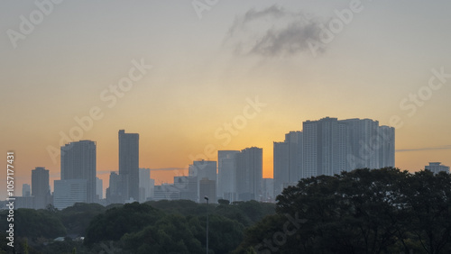 Obraz premium 東京湾岸の穏やかな朝焼け