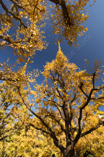 Obraz premium 紅葉した神宮外苑のイチョウ並木