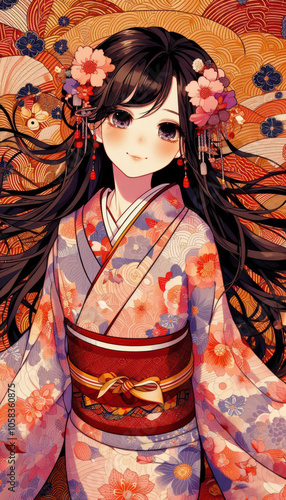 © dalb, Naklejka premium 着物を着た美人画 イラスト