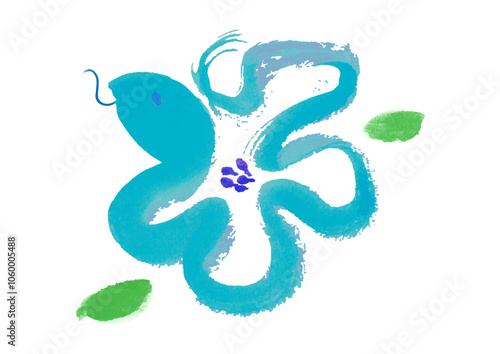 Obraz premium 2025年 巳年 年賀状用 花の形のへびの手書き和風筆イラスト