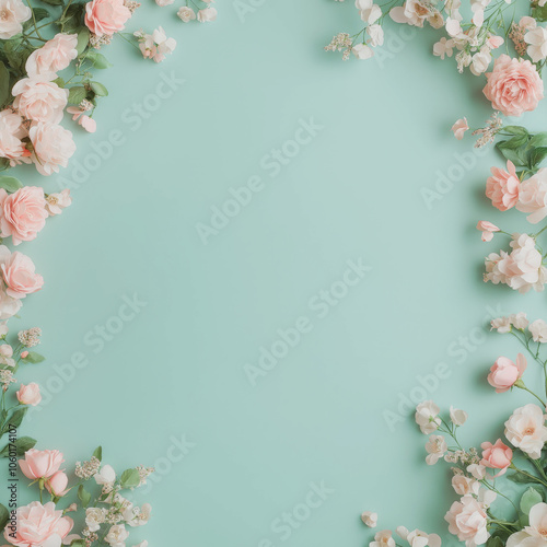 Obraz premium 민트 녹색 배경에 부드러운 꽃 프레임