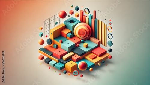 Obraz premium カラフルな幾何学模様の立体アートデザイン