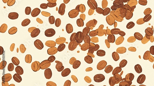 Obraz premium たくさんのコーヒー豆がちりばめられたシンプルなイラストと白い背景