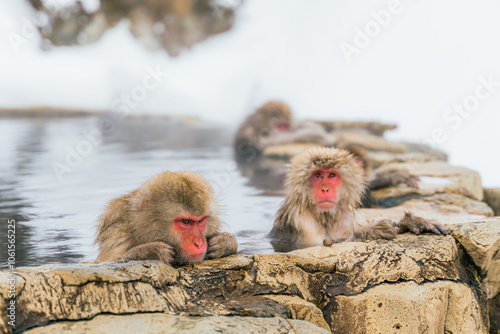 © 笹本 永久, Obraz premium 温泉に浸かる日本猿
