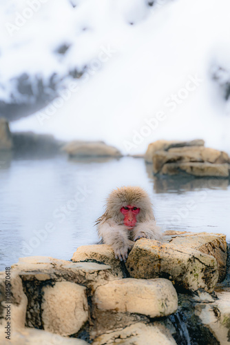 © 笹本 永久, Obraz premium 温泉に浸かる日本猿
