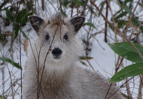 Fototapeta premium 雪の中の二ホンカモシカのこども