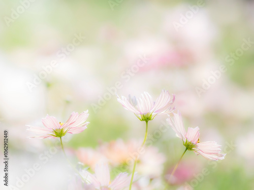 © STOCK THE WORLD, Obraz premium 秋の公園や花壇を彩るコスモスのある風景。背景。自然風景素材。