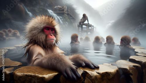 © S, Obraz premium 온천욕중인 일본 원숭이