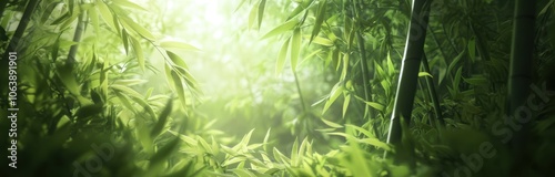 Obraz premium 緑豊かな竹林の中を照らす柔らかな光と新緑の美しさを楽しむ瞬間