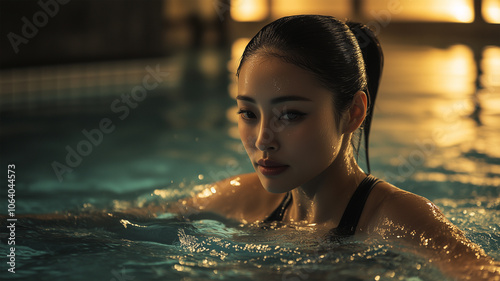 Fototapeta premium 運動に励む女性の水中歩行