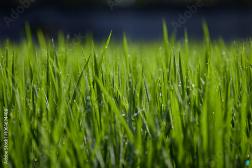 © 汐理 宮本, Fototapeta premium 朝露の水田