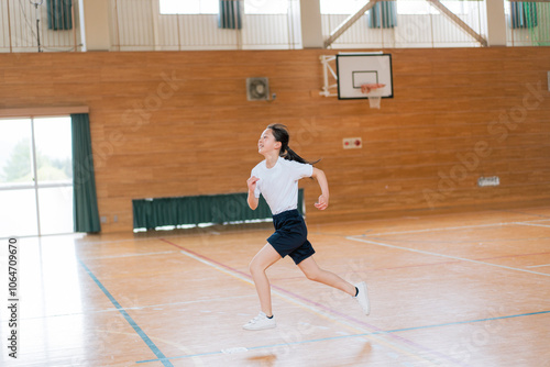 Fototapeta premium 学校の体育館の中で走る体操着姿の女子生徒