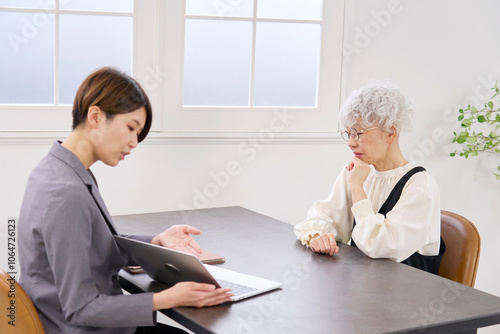 © siro46, Fototapeta premium 保険の営業で悩む高齢者の女性