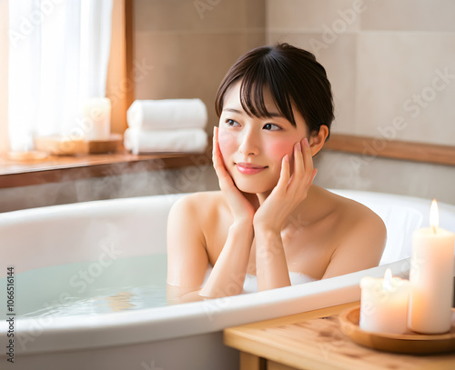 Obraz premium 湯船につかる女性 リラックス ビューティー 温活