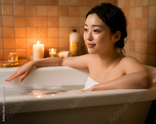 Obraz premium 湯船につかる女性 リラックス ビューティー 温活