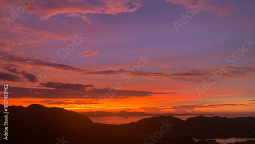 Obraz premium 夕焼けに染まる川内峠ドライブ