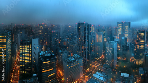 © bephoto, Naklejka premium 雨上がりの新宿高層ビルの眺め