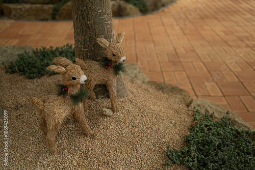 Obraz premium 크리스마스 장식물을 쓰고있는 사슴 조형물