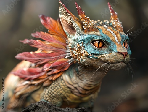 © AIart_JP, Fototapeta premium 恐竜時代の猫