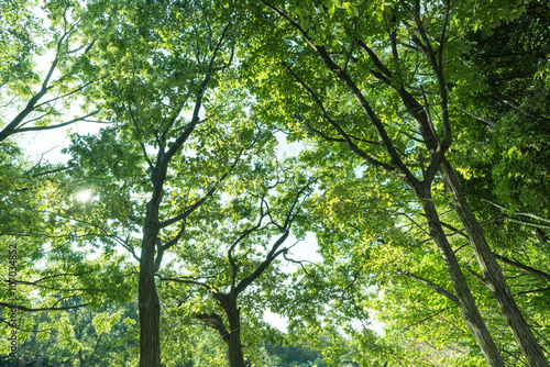 © youreyesonly, Obraz premium 新緑の森の中の散歩