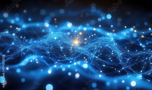 © 炳伟 梁, Obraz premium 曲线粒子波纹弯曲线条点线科技背景