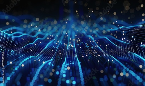 © 炳伟 梁, Obraz premium 曲线粒子波纹弯曲线条点线科技背景